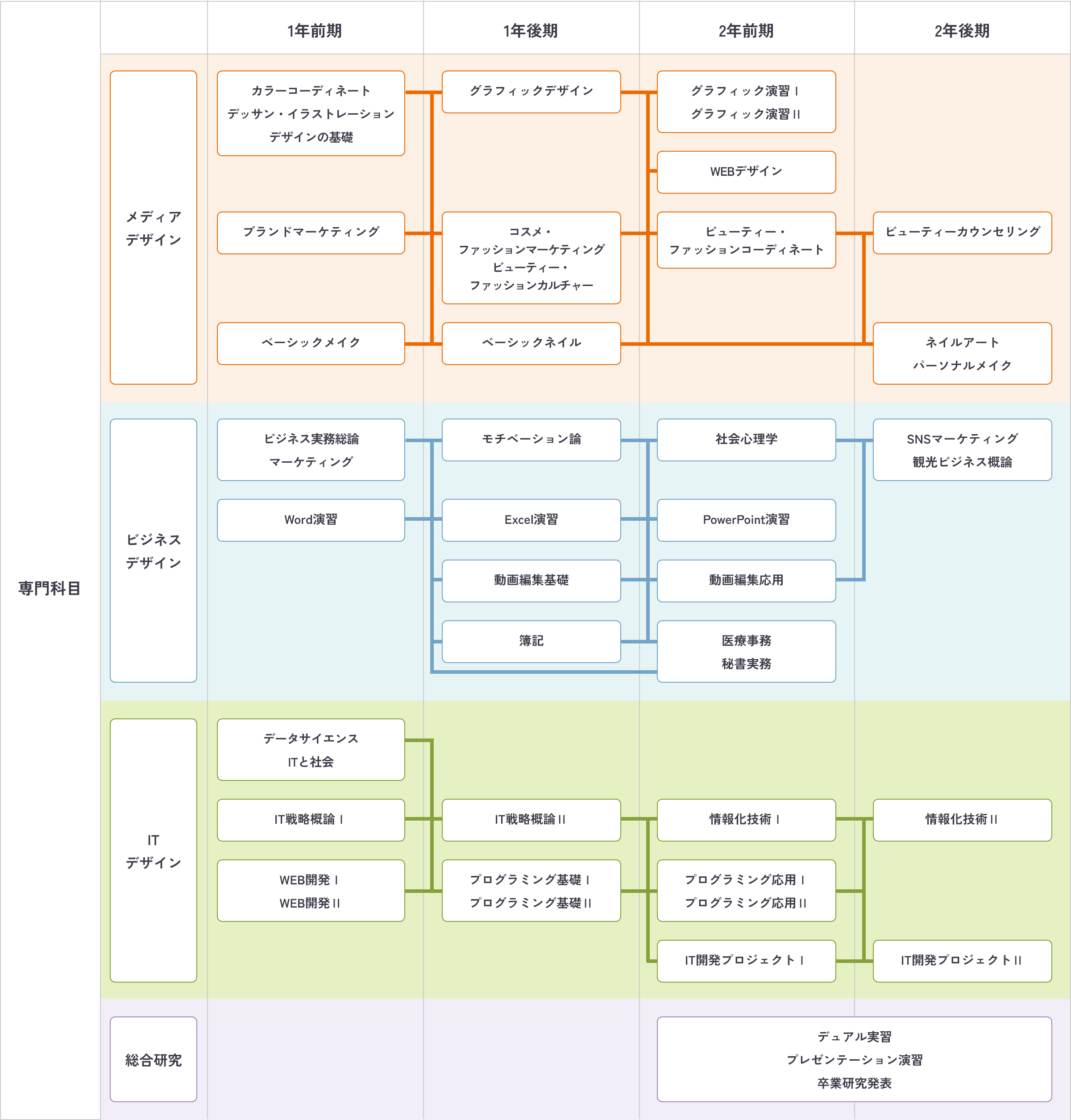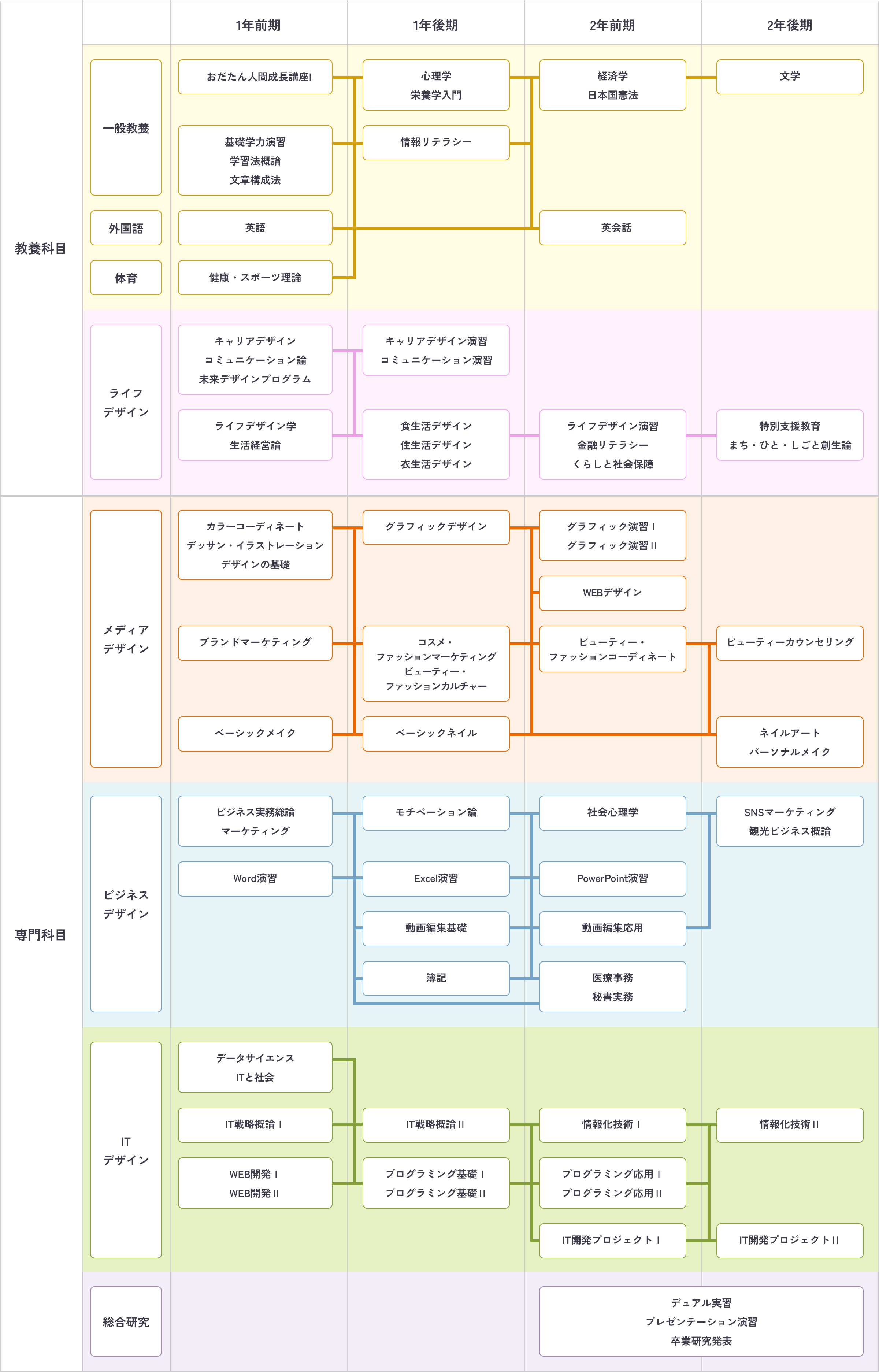 - 入学後に学んだ内容を基にテーマを設定し、そのテーマに合わせて学修する2年次科目です。